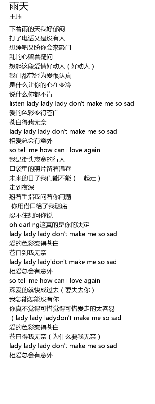 | [00:25.800] | 下着雨的天我好郁闷 |