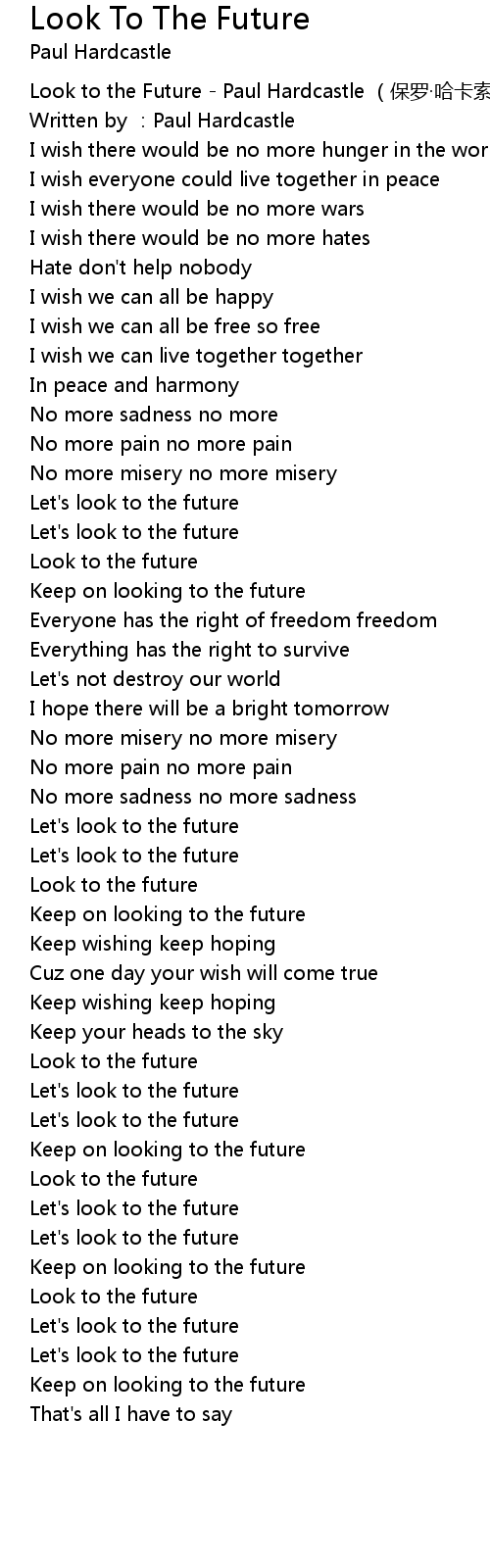 | [00:01.219] | Look to the Future - Paul Hardcastle (保罗·哈卡索) |