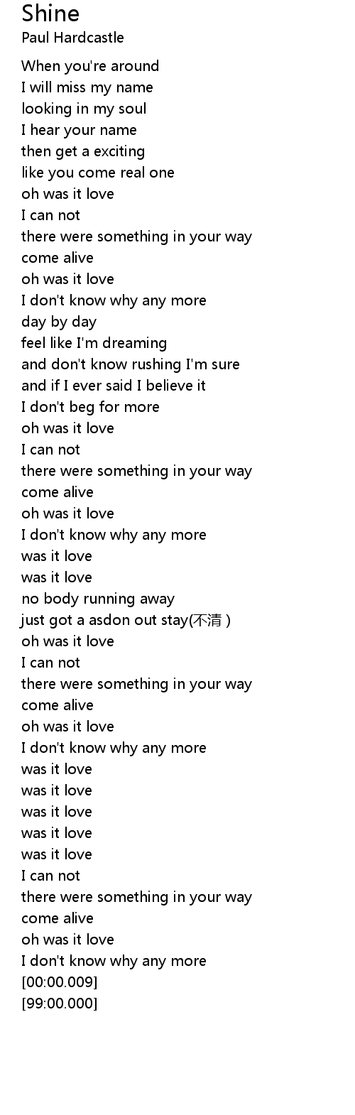 | [02:05.78] | just got a asdon out stay(不清) |