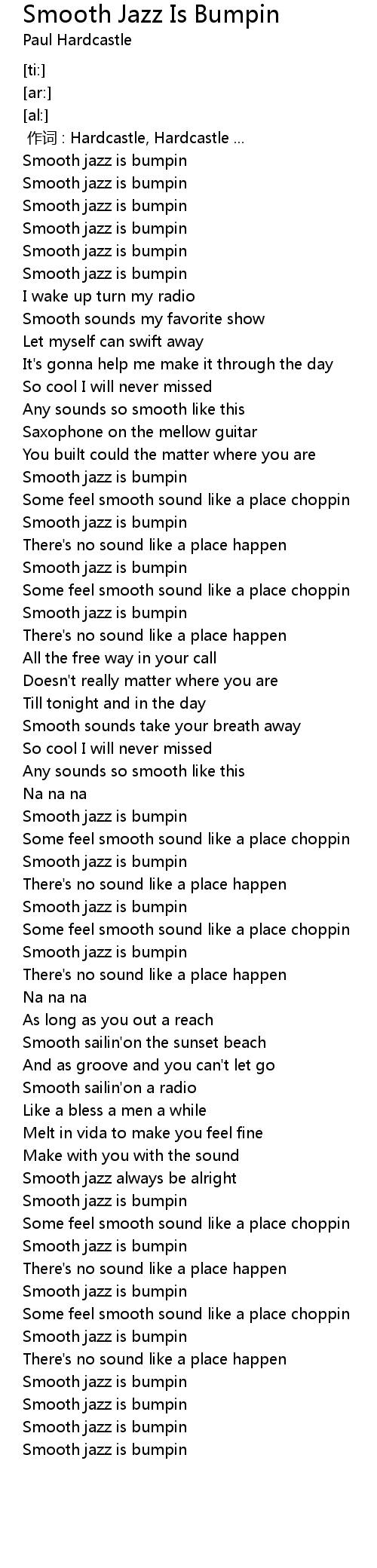 | [03:19.70] | Smooth jazz is bumpin |