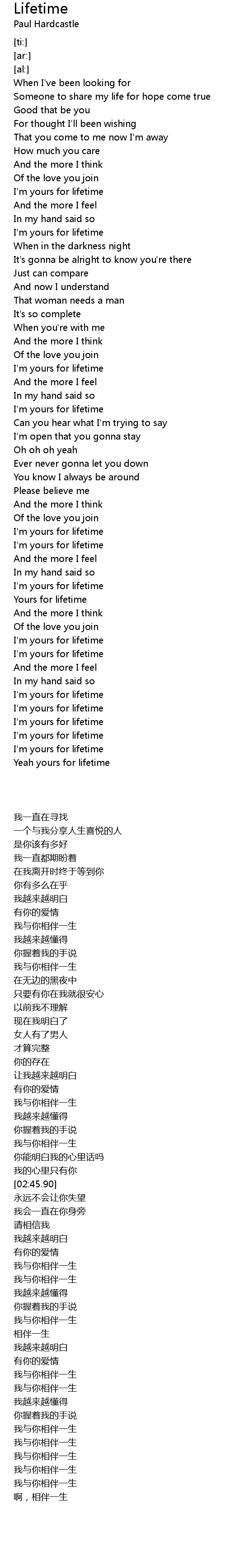 I'm yours for lifetime |