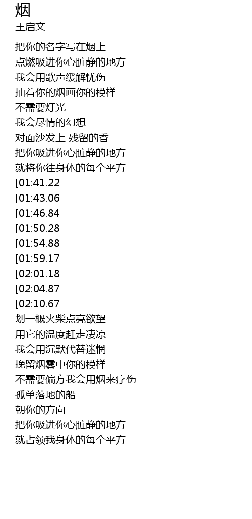 | [03:11.34] | 不需要偏方我会用烟来疗伤 |