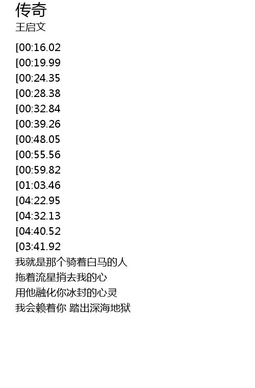 | [02:24.29][00:19.99] | 名字叫美丽的传奇 |