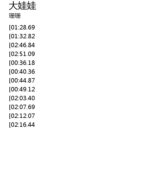 | [02:38.54][01:28.69][00:18.83] | wo chuan shang ni da da de wai tao xiang ge da wa wa |