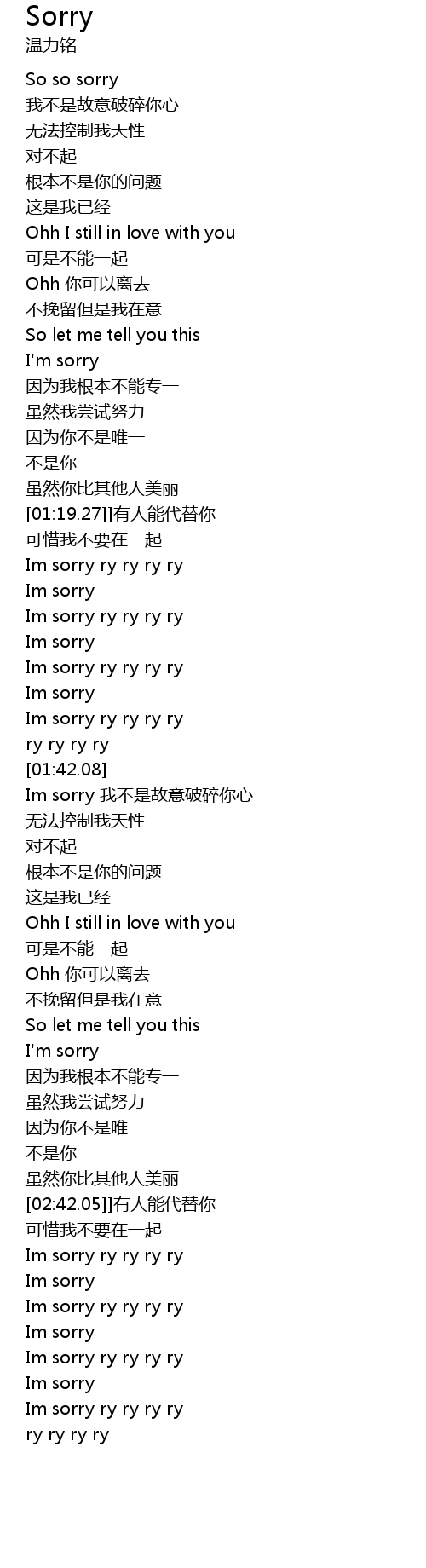 | [01:57.18] | Im sorry 我不是故意破碎你心 |