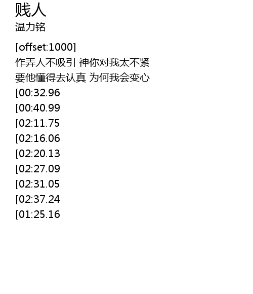 | [01:53.11][00:32.96] | 这贱人最低等 从没试过要认真 |