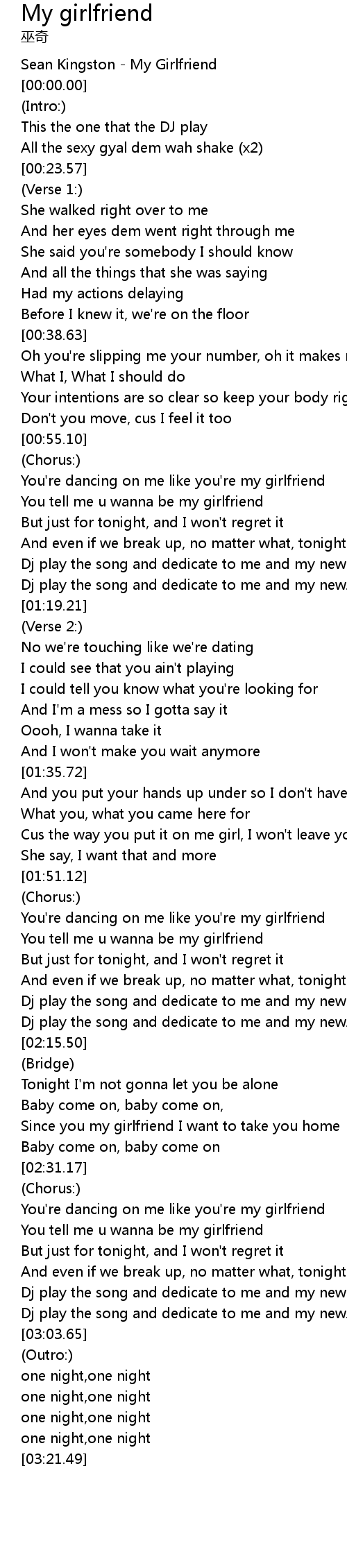 | [00:-7.52] | Sean Kingston - My Girlfriend |