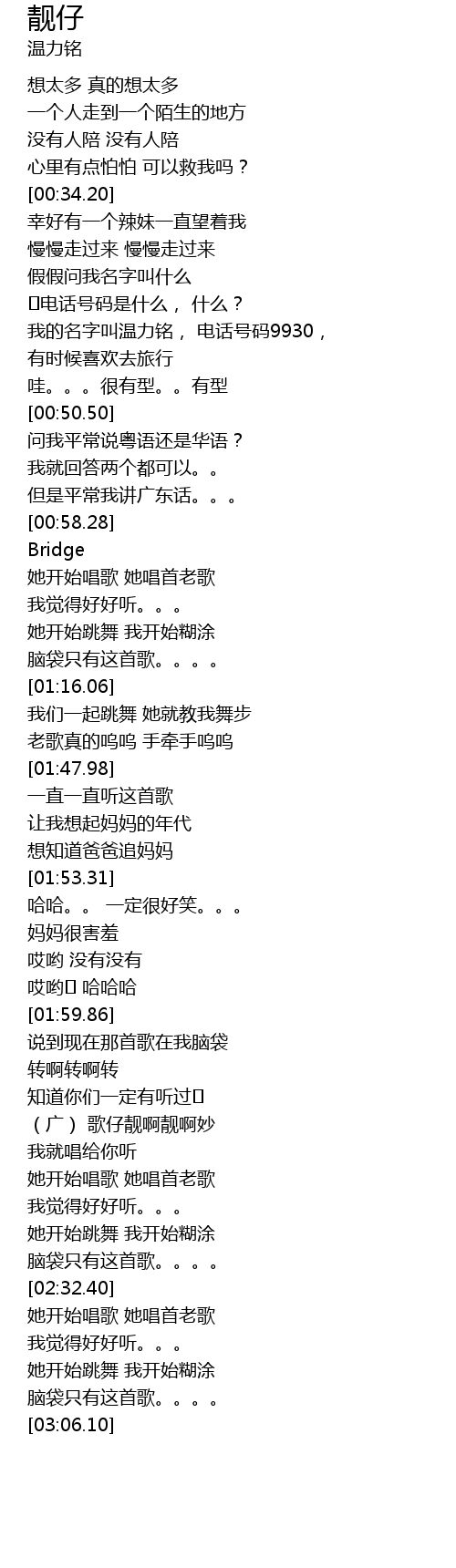 | [02:06.58] | (广) 歌仔靓啊靓啊妙 |