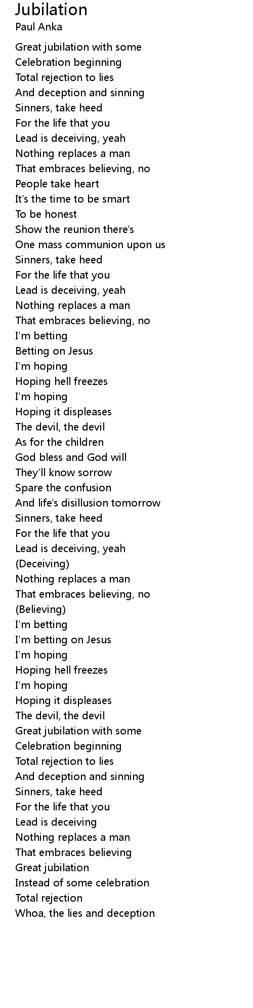 Great jubilation |
