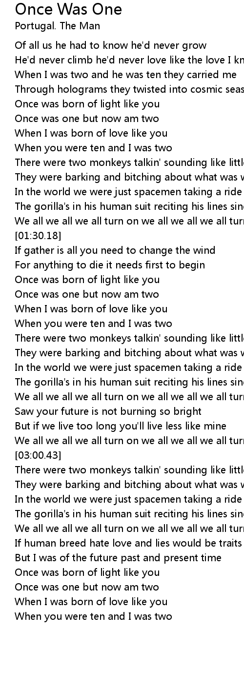 [03:23.04] The gorilla's in his human suit reciting his lines singing
