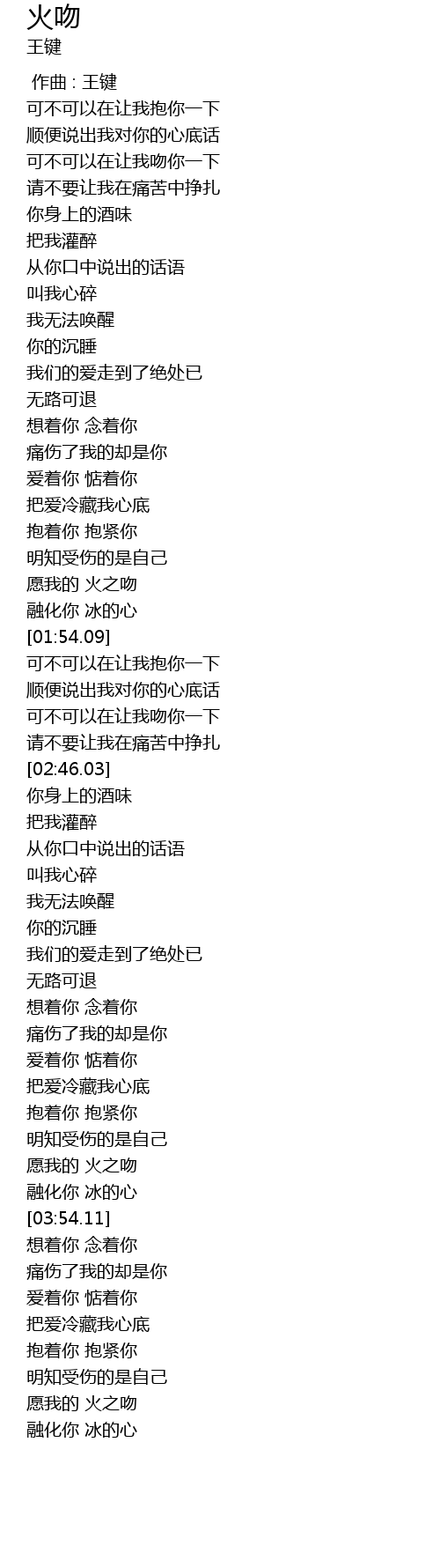 | [01:43.98] | yuàn wǒ de huǒ zhī wěn |