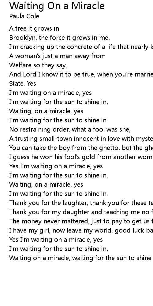 Waiting, on a miracle, yes |