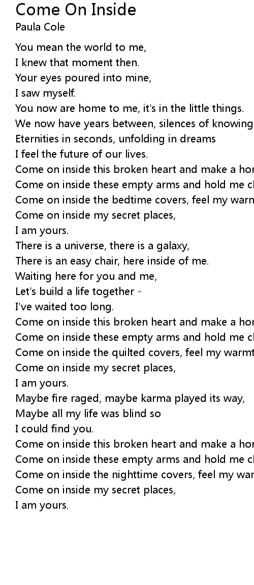 Come on inside this broken heart and make a home. |