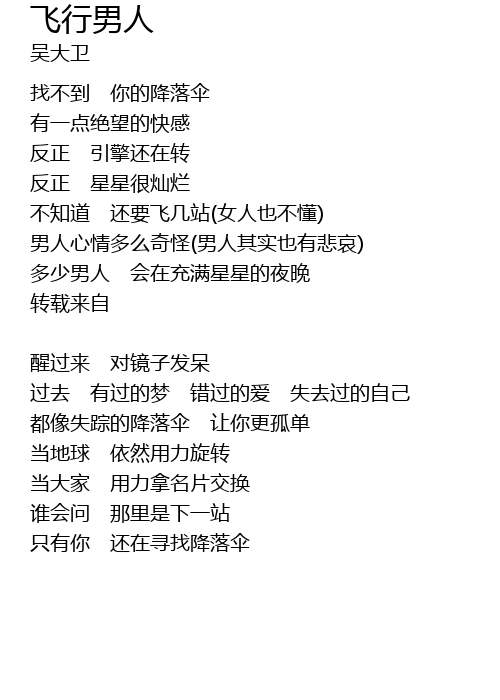 | 不知道 还要飞几站(女人也不懂) | |