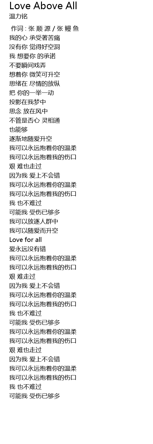 | Song | Love Above All |