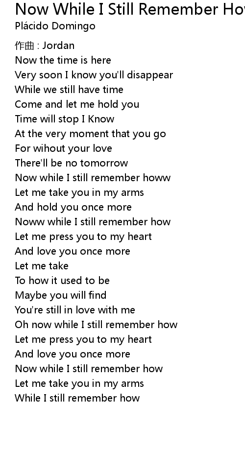 | Song | Now While I Still Remember How |