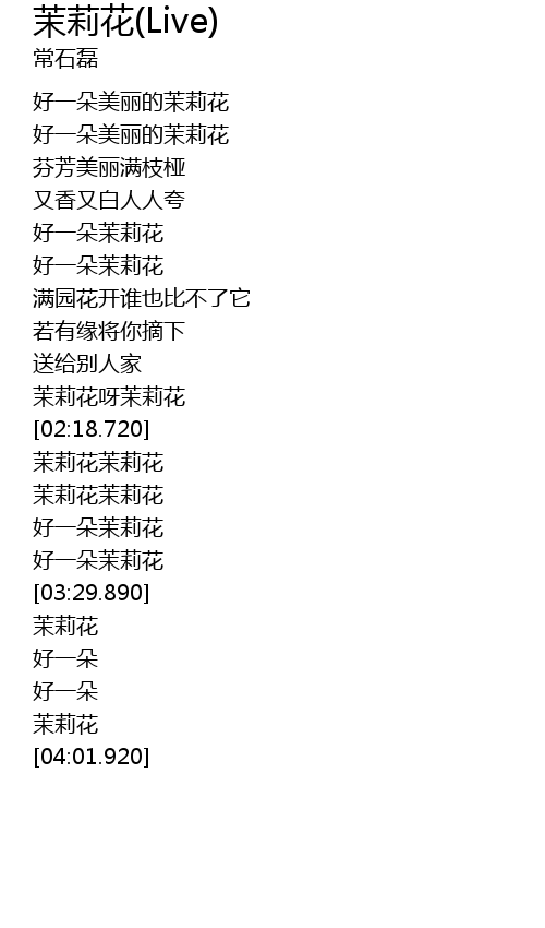 | [02:55.670] | 茉莉花茉莉花 |