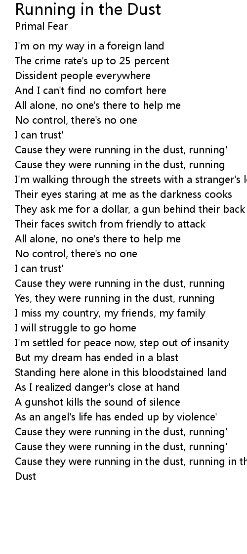 Cause they were running in the dust, running' |