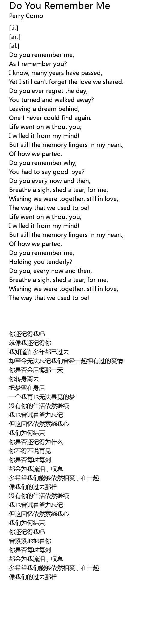 Do you remember me, |