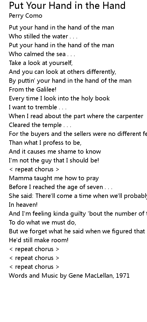 Put your hand in the hand of the man |