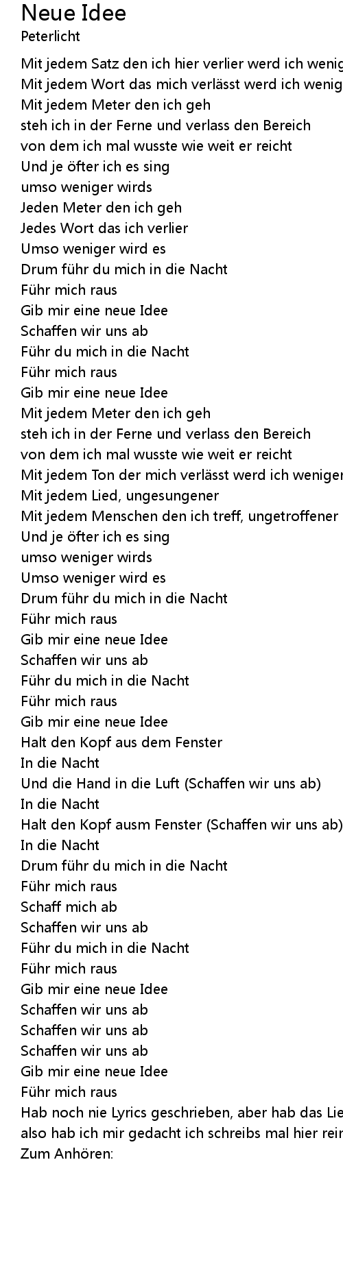 | Hab noch nie Lyrics geschrieben, aber hab das Lied gesucht, und nichts gefunden | |