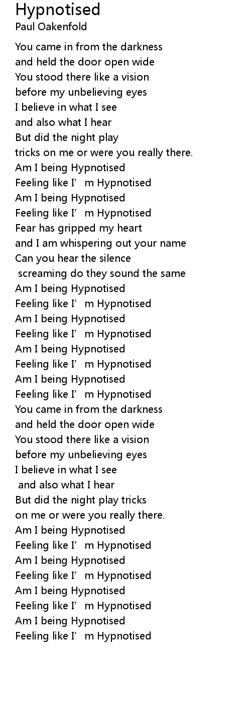 | [04:01.560] | Feeling like I’m Hypnotised |
