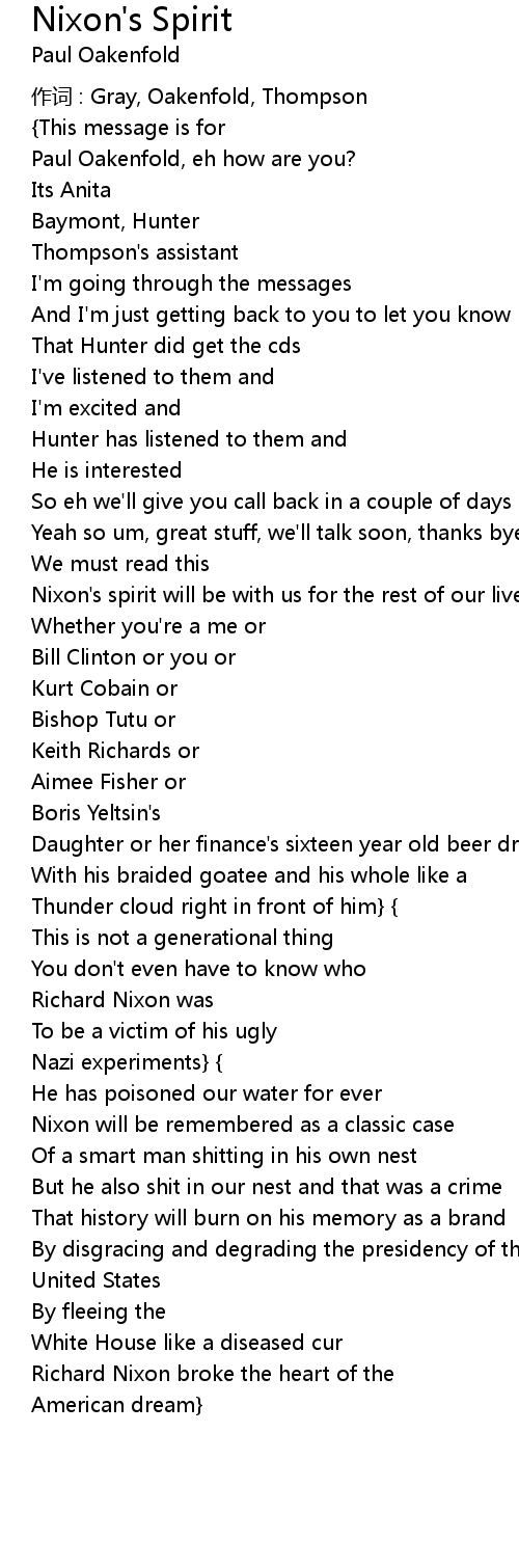 | Nixon' s spirit will be with us for the rest of our lives | |