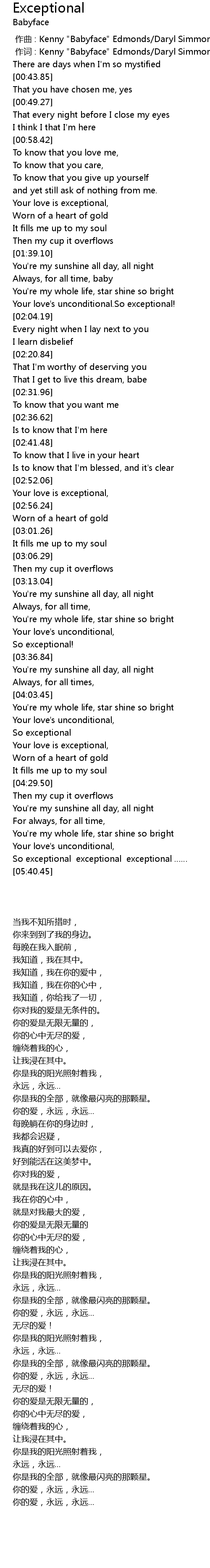 | [04:15.58] | Your love is exceptional, |