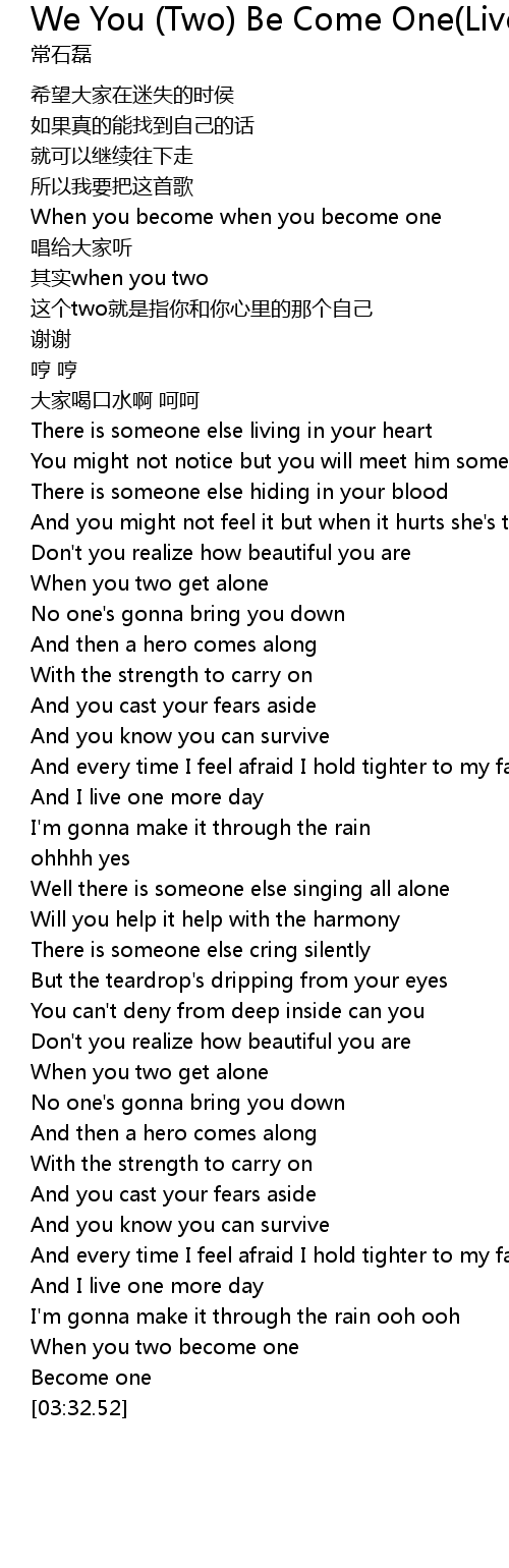 | [03:23.75] | When you two become one |
