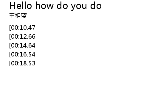| [00:30.57][00:12.66] | Hello,How do you do? |