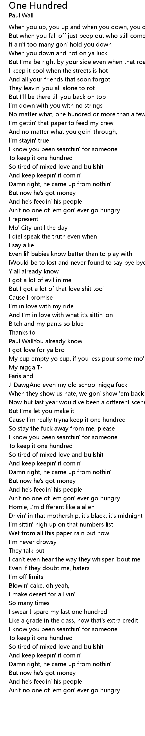 One Hundred Lyrics