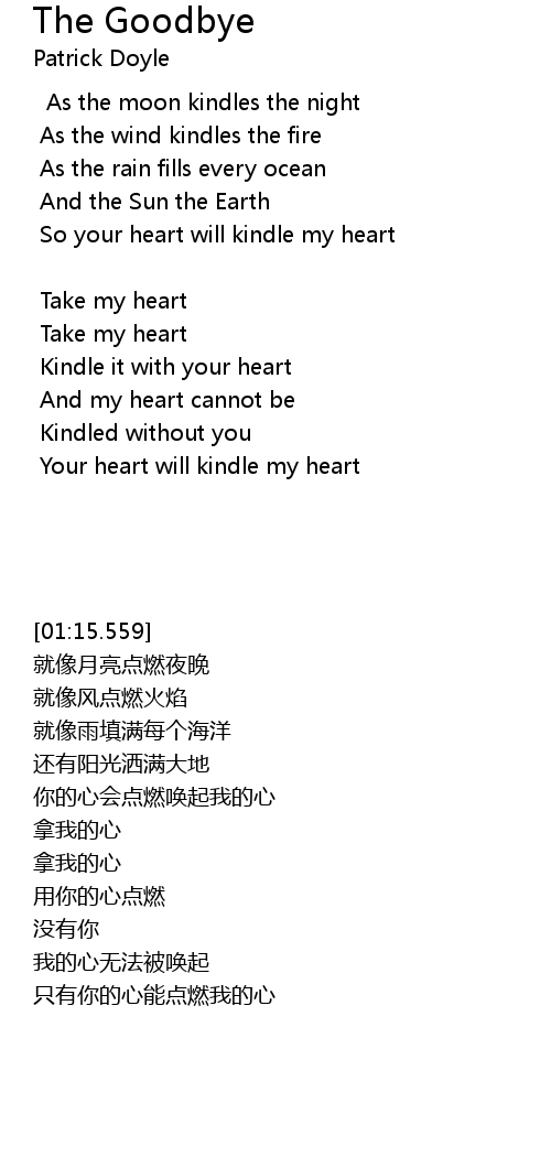 | Your heart will kindle my heart |