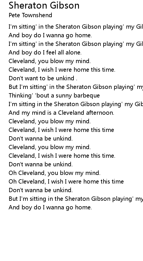 But I'm sitting in the Sheraton Gibson playing' my Gibson |