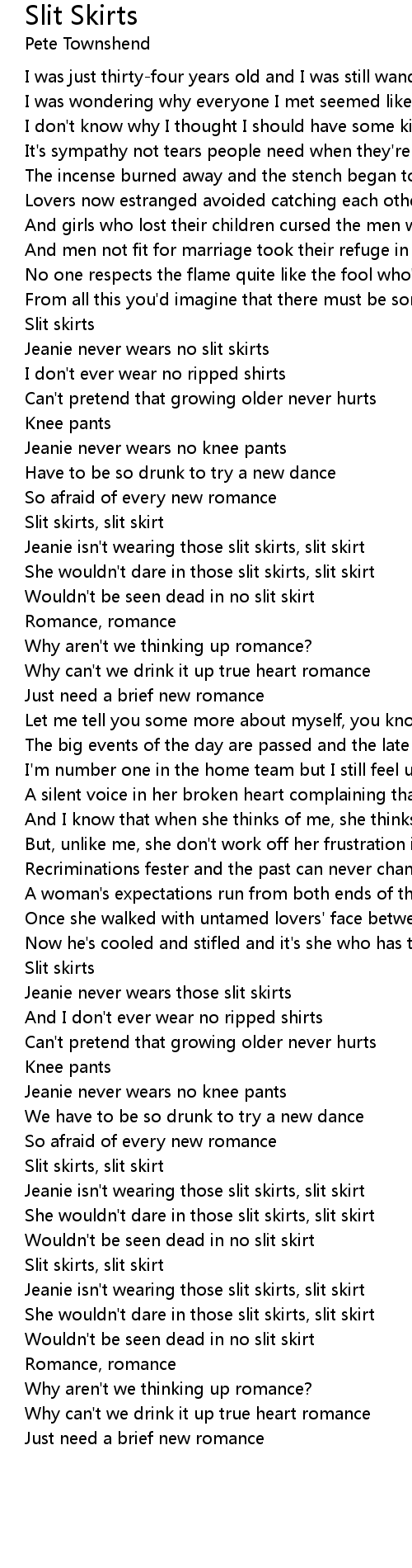 Jeanie never wears no slit skirts |
