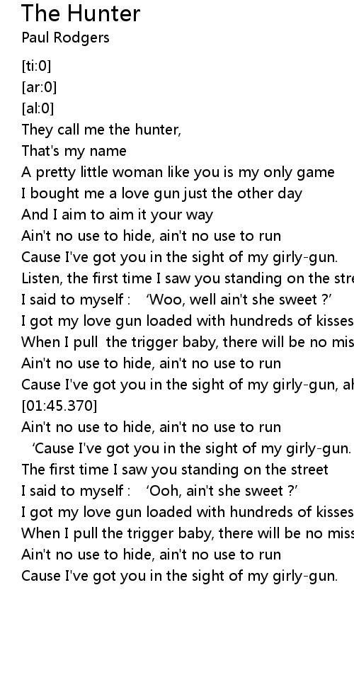 | [00:52.070] | Cause I' ve got you in the sight of my girlygun. |