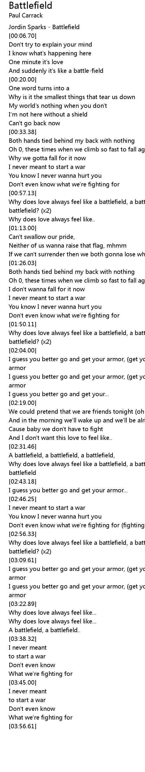 Why does love always feel like a battlefield, a battlefield, a battlefield? (x2) |