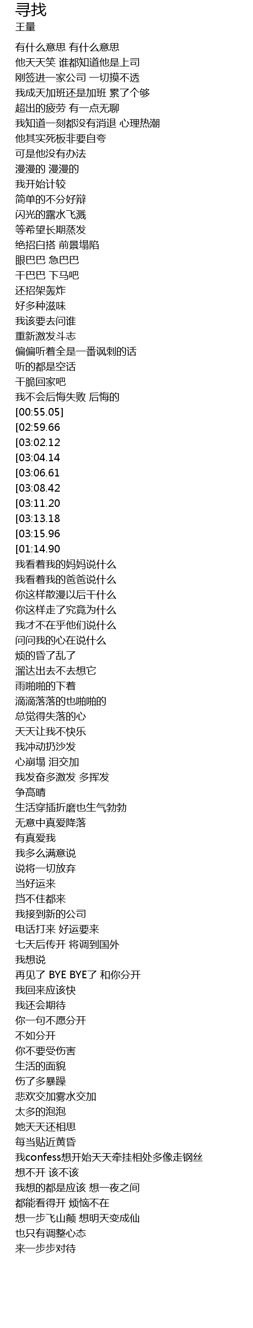 | [03:20.34][03:02.12][02:02.81][00:58.80] | nǐ bù tíng zài xún zhǎo |