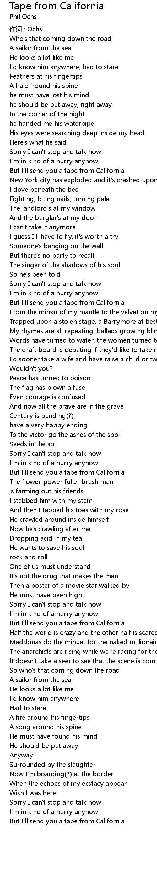| 作词 : Ochs | |