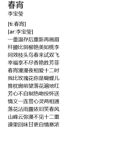 | [01:01.628] | chūn xiāo màn màn yè xiāng ài shí èr shí |