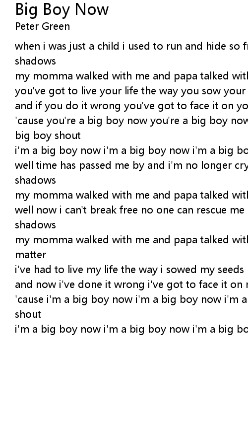 'cause i'm a big boy now i'm a big boy now i'm a big boy now so let the big boy shout |