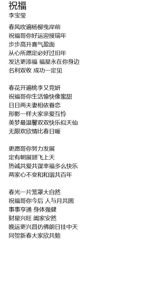 | zhù fú gē nǐ hǎo yùn yíng jiē ruì nián | |