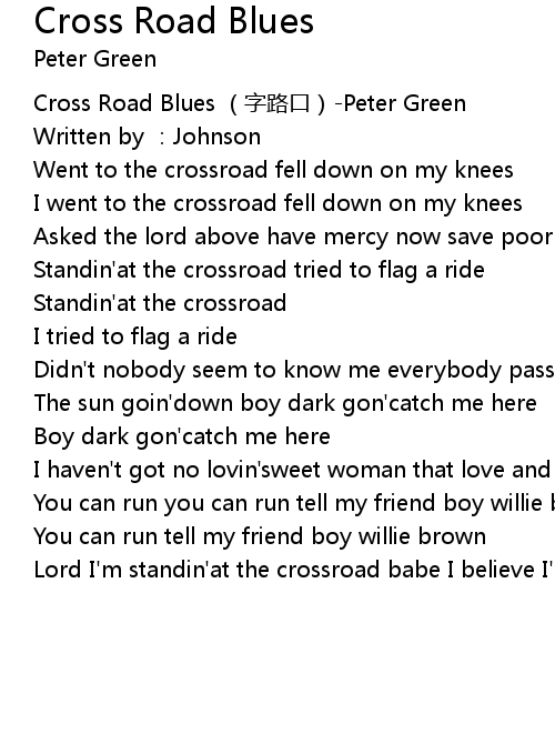| [00:00.00] | Cross Road Blues zi lu kou Peter Green |