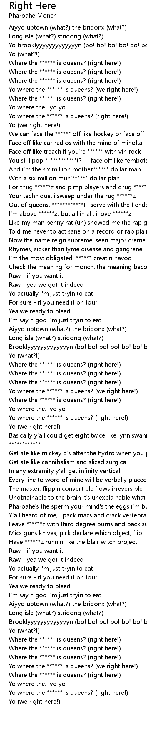 | Pharoahe' s the sperm your mind' s the eggs i' m burstin through | |