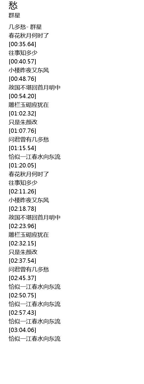| [00:01.66] | jǐ duō chóu qún xīng |