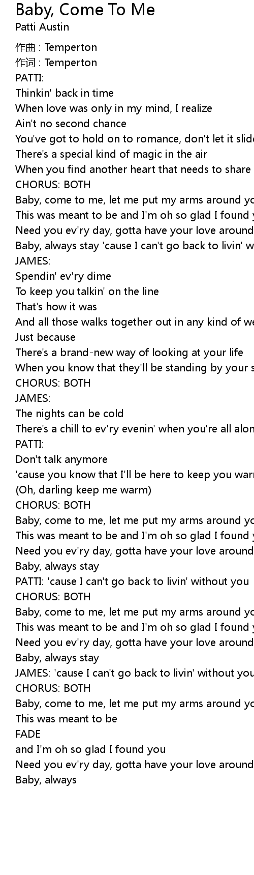 | Song | Baby, Come To Me |