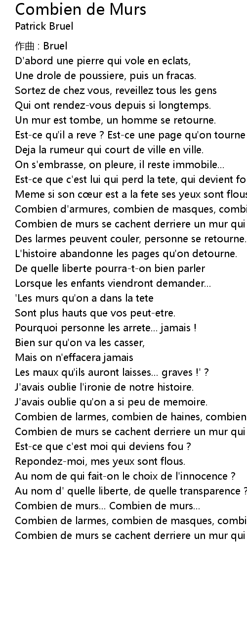 | Song | Combien de Murs |