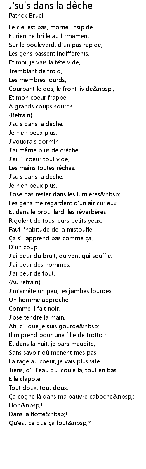 | J' suis dans la dè che. | |