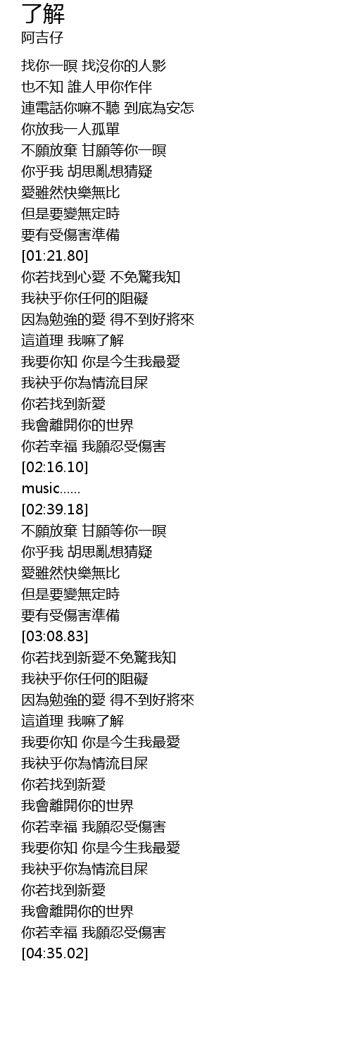 | [01:22.35] | 你若找到心愛 不免驚我知 |