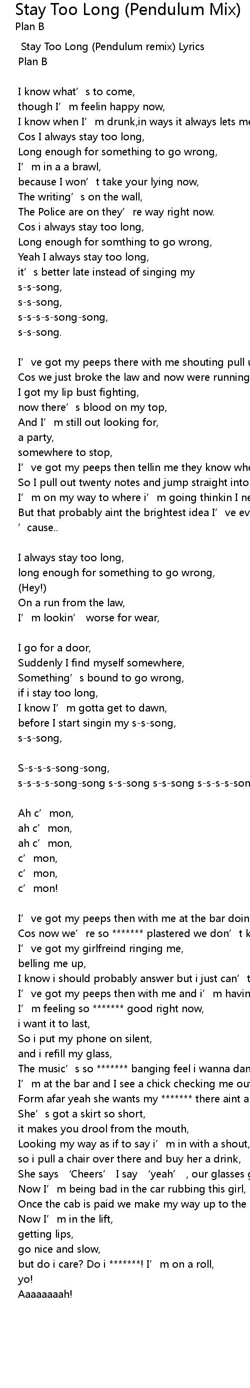 | Stay Too Long (Pendulum remix) Lyrics | |