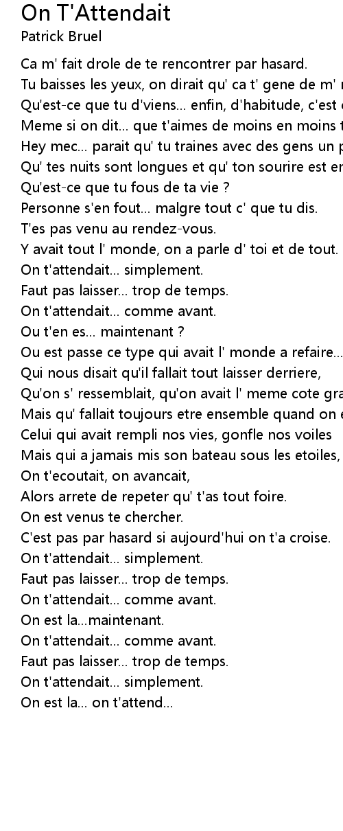 Qu' tes nuits sont longues et qu' ton sourire est en retard. |